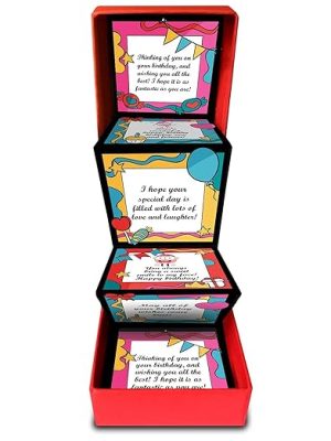 Cute box of birthday messages that pop out of the little box makes a sweet gift on a birthday for friends, siblings, girlfriend, boyfriend